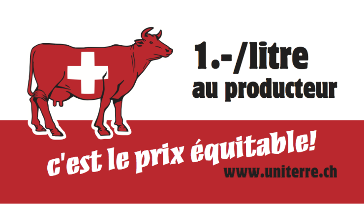 «Pour Fr.1-/ litre de lait payé aux producteur-trice-s de lait afin qu’ils puissent vivre dignement!»